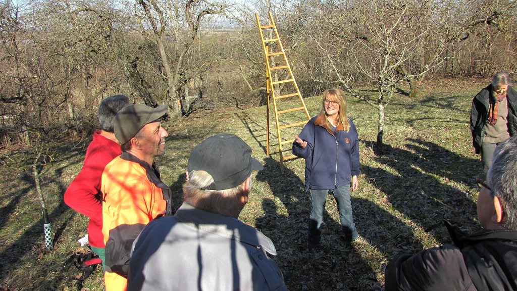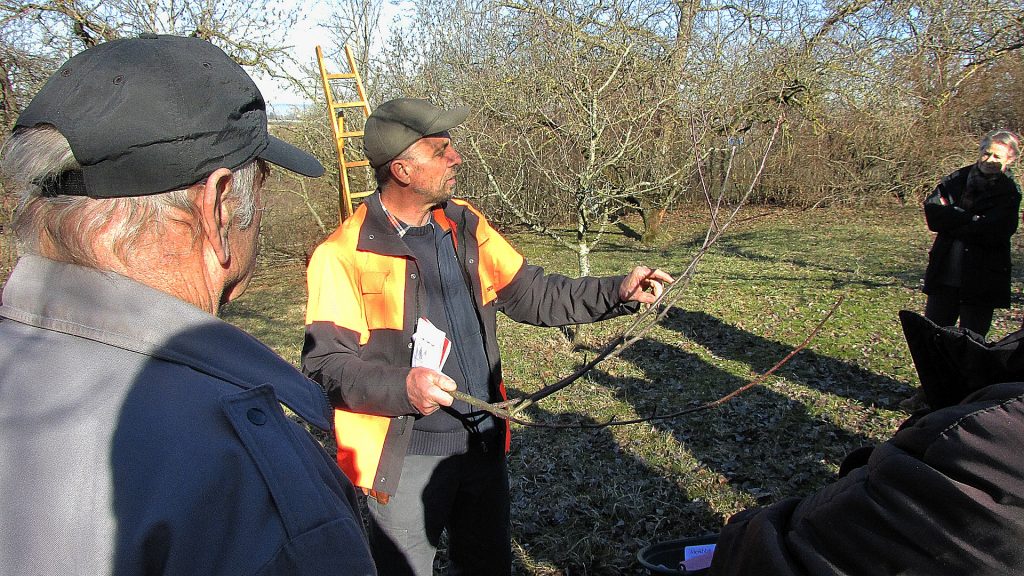 Unter der Leitung von Herrn Rudolf Siehler, Kreisfachberater für Gartenkultur und Landespflege vom Landratsamt Neu-Ulm, wurde nach einer kurzen Einführung in die theoretischen Grundlagen des Schnittes, die praktische Durchführung in leicht verständlicher Weise vor Augen duchgeführt. In unserem Vereinsgarten stehen junge und alte Bäumen, jeder benötigt eine besondere Pflege.