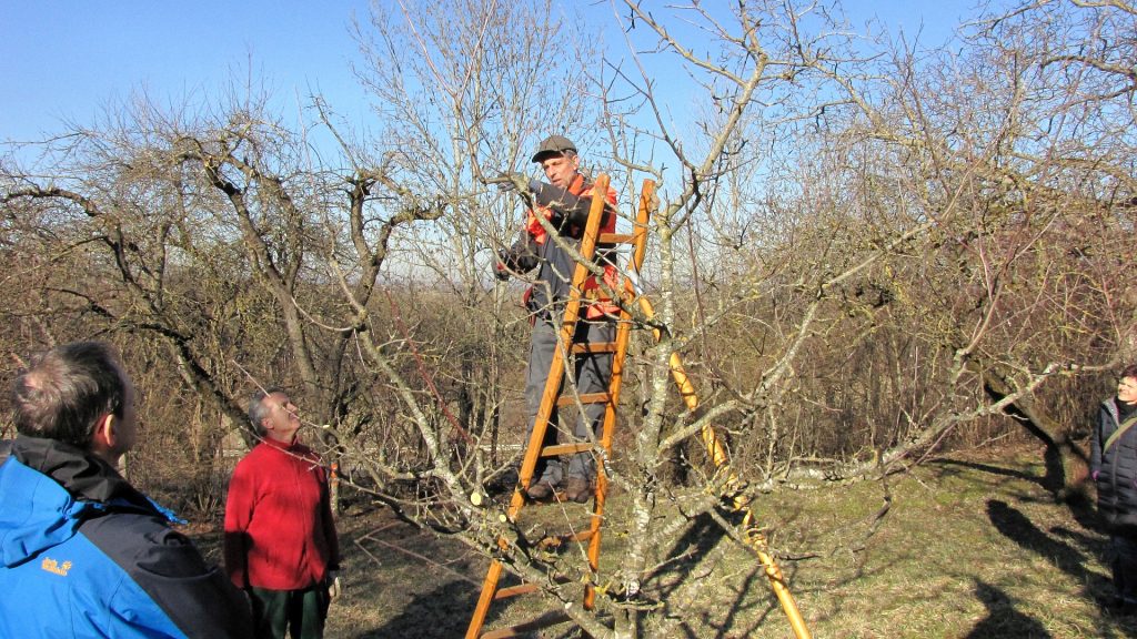 Die jungen Bäumen brauchen einen Erziehungsschnitt, um sich gut zu entwickeln und die älteren Bäume einen Erhaltungsschnitt, um vital zu bleiben und lange Obst zu haben.